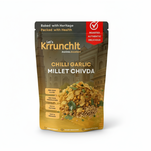 Our snacks are baked or roasted with less than 5% oil—no deep frying, no trans fat—making them a healthier choice compared to traditional fried snacks. We use only premium, farm-fresh ingredients like wheat, millets, and pulses, sourced directly from farmers. Made with homemade care in hygienic kitchens, every pack carries the same goodness as food from mom’s kitchen. With nitrogen-flushed packaging, our snacks stay crispy and fresh for 6–9 months without any artificial preservatives.